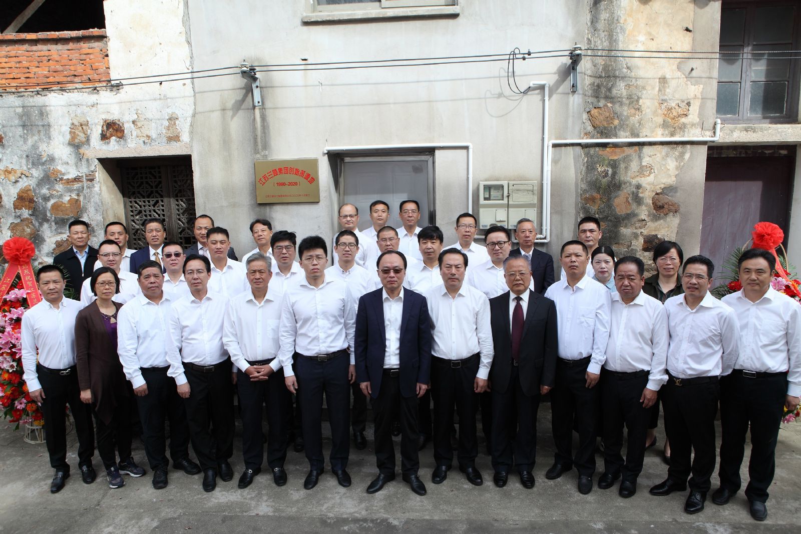 全體經(jīng)理層領(lǐng)導(dǎo)在江蘇蘭陵集團(tuán)創(chuàng)始策源地合影(前排左七為董事長(zhǎng)總經(jīng)理陳春源)